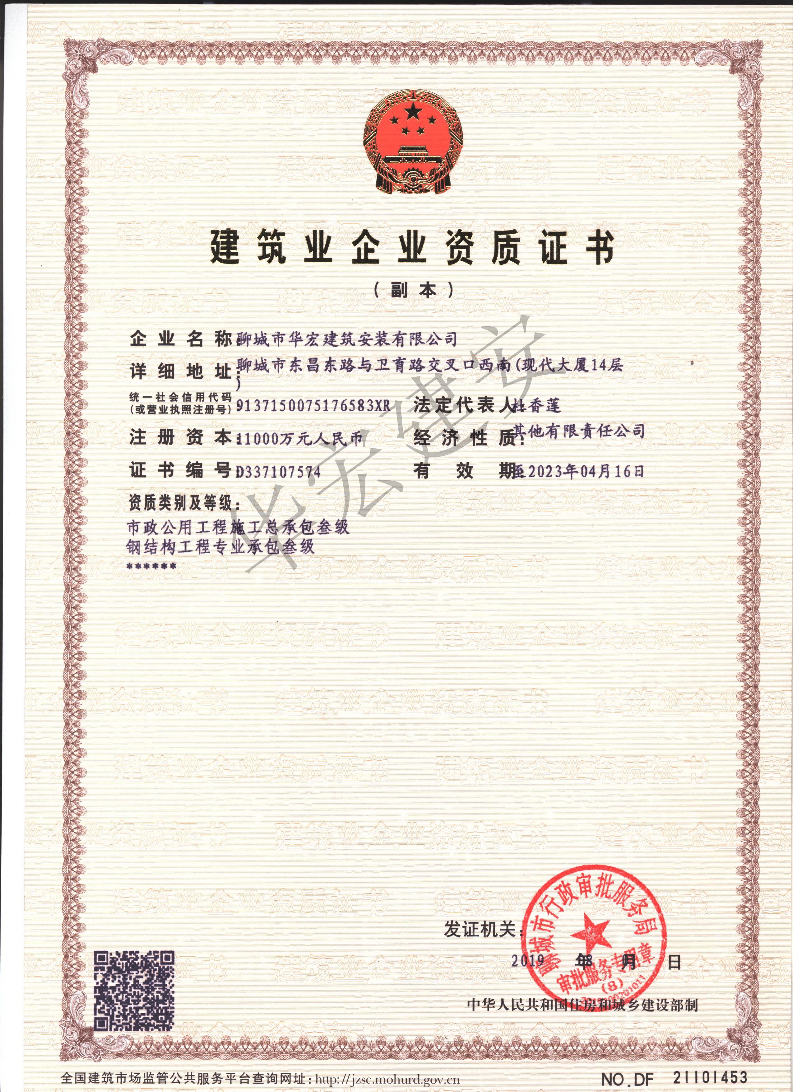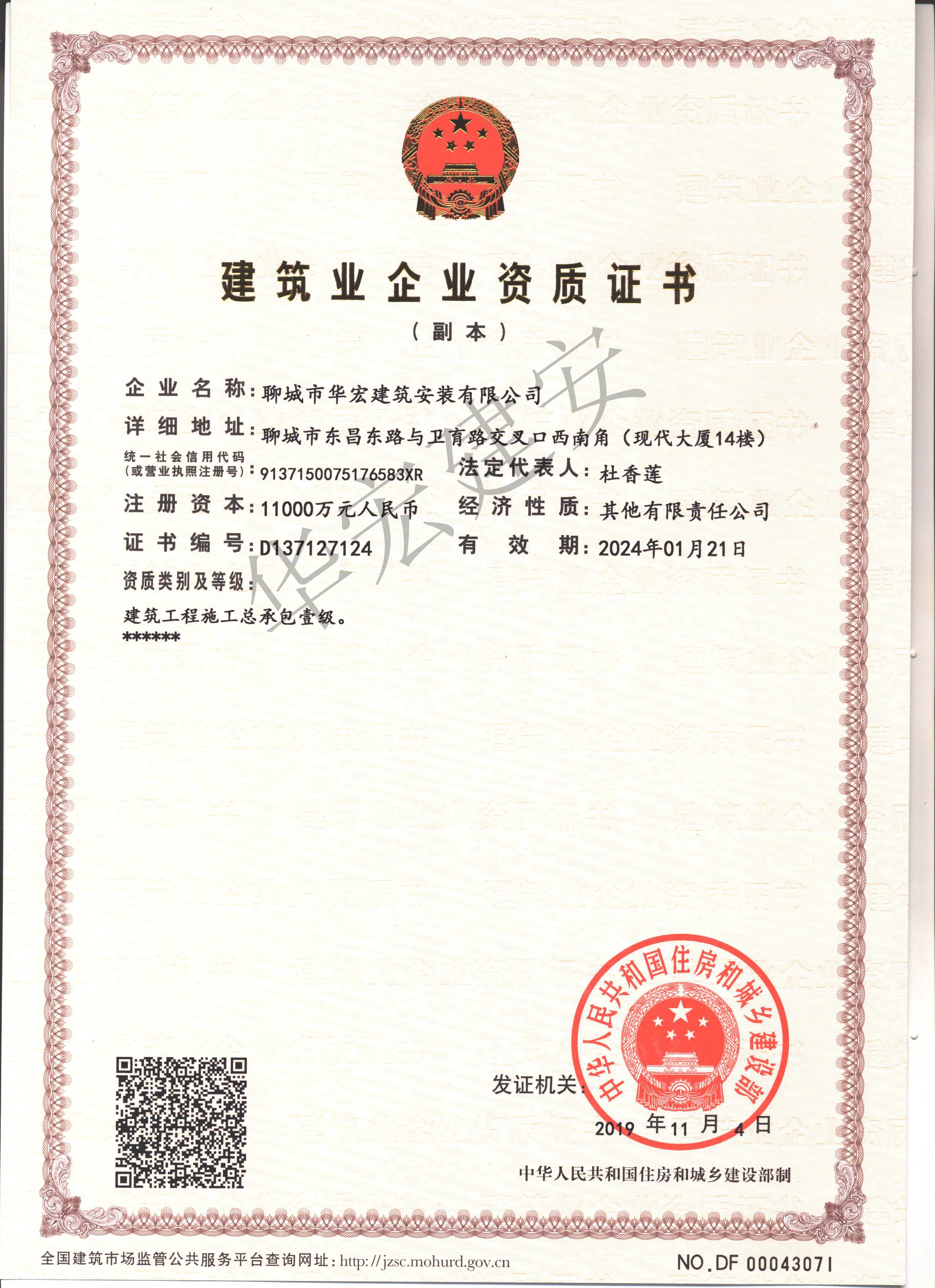 聊城市華宏建筑安裝有限公司成立于2002年5月,公司自2002年成立以來,不斷發(fā)揚 “敬業(yè)修身 打造精品 開拓創(chuàng)新 弄潮勇進(jìn)”的創(chuàng)業(yè)精神,始終遵循“以質(zhì)量求生存、靠精品創(chuàng)品牌、憑信譽贏市場”的宗旨,認(rèn)真奉行“科學(xué) 高效 一流”的質(zhì)量方針